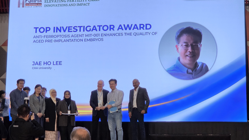 [일요주간 = 하수은 기자] 차 여성의학연구소 서울역(원장 윤태기)은 기초의학연구실 이재호 교수가 ‘페롭토시스 표적 항노화 치료제’ 연구로 세계 3대 생식의학회인 2025 환태평양생식의학회(PSRM)에서 최우수 논문상을 수상하며 고령 여성 난임 치료의 새로운 전기를 열었다고 27일 밝혔다.