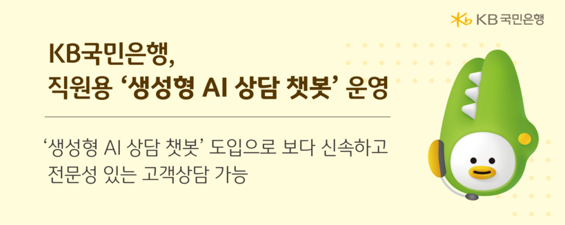 KB국민은행 관계자는 “생성형 AI 기반 상담 챗봇은 직원들의 업무 효율성을 높이는 동시에 고객에게 보다 전문적이고 신속한 서비스를 제공할 수 있을 것”이라며 “앞으로도 최신 AI 기술을 활용해 고객과 직원 모두에게 혁신적인 금융 경험을 선사하겠다”고 밝혔다.