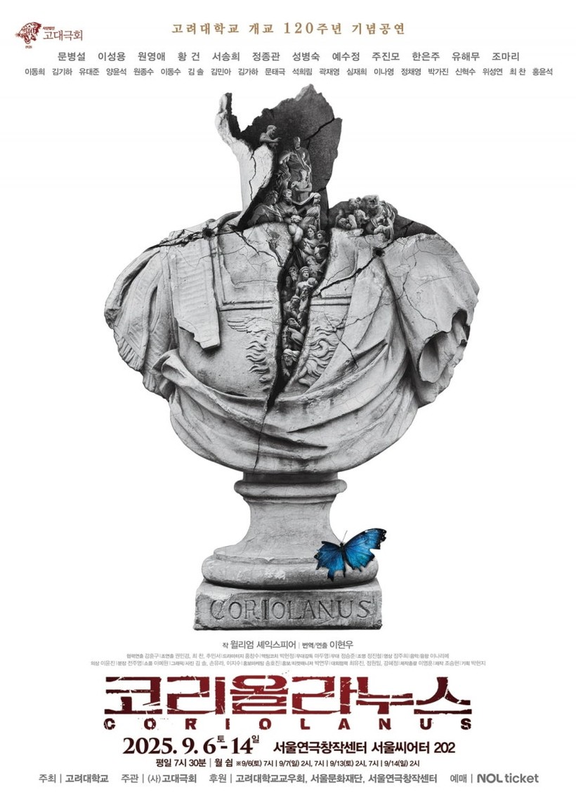 [일요주간 = 김성환 기자] 고려대학교 개교 120주년을 맞아 현존하는 가장 오래된 연극단체 고대극회가 특별한 공연을 선보인다. 오는 9월 6일부터 14일까지 서울씨어터202에서 셰익스피어의 마지막 비극 ‘코리올라누스’를 공연한다.