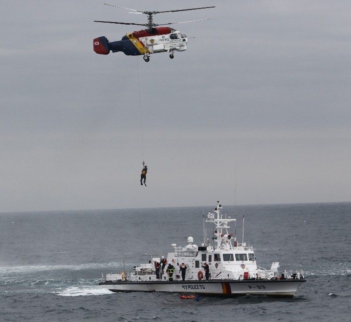 | ▲ 기상악화에 대비해 인명 구조 훈련 중인 해양경찰.(사진=포항해양경찰서 제공) |
