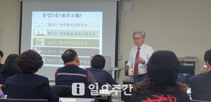 [일요주간 = 소정현 기자] 지난 6일 고려대 평생교육원 라이시움관 213호에서는 K-풍수지리 아카데미 개강식이 있었다. 첫날부터 좁은 강의실을 가득 메운 열기와 호응은 대기의 흐릿한 미세먼지를 일순간 벗겨 내듯 모두를 환한 분위기로 만들었다.