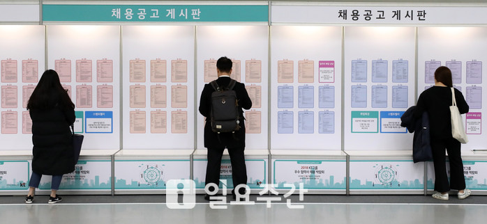 ▲채용 박람회를 찾은 구직자들이 채용공고 게시판을 살펴보고 있는 모습. |