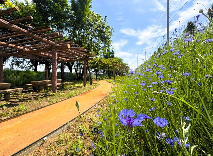 작년에 임시로 조성된 황토길은 전국 최초로 정원 요소를 접목한 점이 특징이다. 기존의 흙길 산책로 개념에서 한 걸음 더 나아가, 길을 따라 다양한 정원식 초화류와 약용식물을 식재함으로써 식물 테라피 효과를 극대화했다. 특히 길 주변에는 약용 가치가 높은 작약이 군락으로 배치되어 있다.