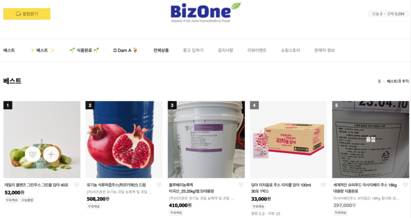 ▲ (사진=(주)비즈원 쇼핑몰 홈페이지 캡처) |