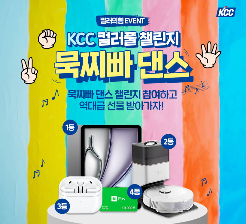 KCC(대표 정재훈)는 공식 인스타그램을 통해 오는 11월 7일까지 ‘컬러풀 묵찌빠 댄스 챌린지’를 진행한다고 15일 밝혔다.