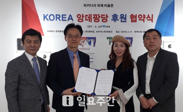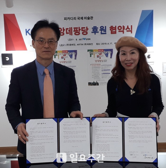 [일요주간 = 소정현 기자] KOREA 앙데팡당 후원 협약식이 17일 피카디리 국제미술관에서 열렸다. 이번 후원 협약식은 아시아권에서는 초유로 앙데팡당전 유치를 이끈 UBIN(유비인) 이순선 대표와 ARTIN(아트인) 김영화 대표 간 성사의 결실을 맺었다.