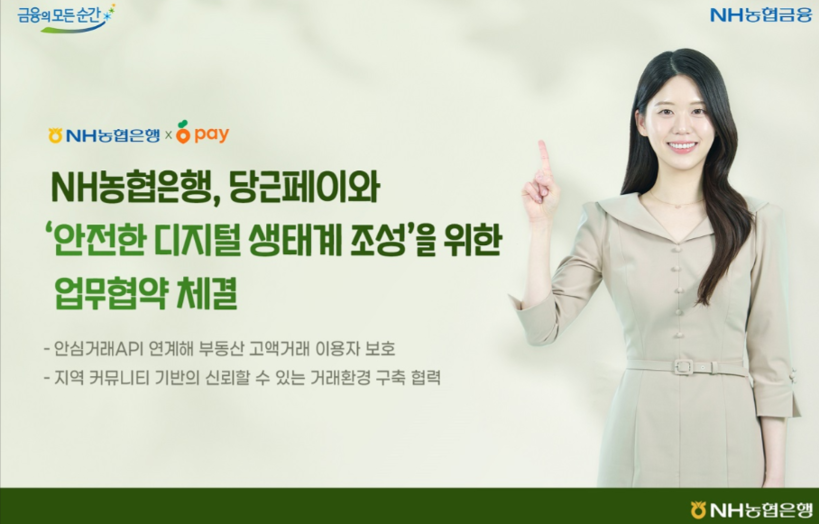 농협은행은 우선적으로 누적 가입자 4300만 명을 보유한 당근의 부동산 서비스에 안심거래API를 연계해, 고액 거래시 안정성과 신뢰성을 제고할 수 있는 금융 서비스를 공동 제공할 계획이다.