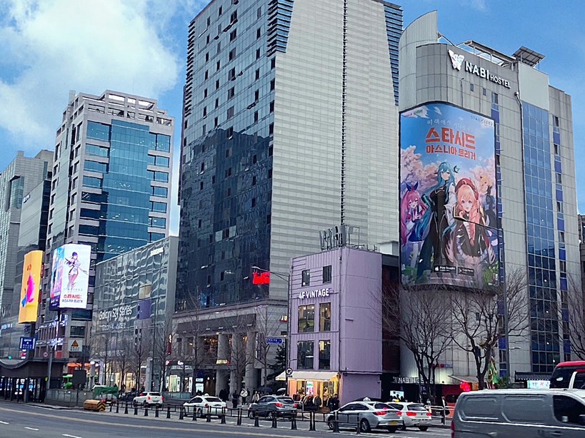 특히 게임·애니메이션 굿즈 매장, 피규어 판매점, 복합문화공간 등이 밀집해 일명 ‘서브컬처 성지’로 떠오르고 있는 홍대입구역에서는 역사 입출구부터 벽면, 층계참까지 ‘스타시드’의 미소녀 캐릭터들이 점령하며 눈길을 사로잡고 있다. 인근 빌딩 전광판에도 소녀 캐릭터가 강조된 초대형 빌보드 광고가 내걸려 이목을 더욱 집중시키고 있다.