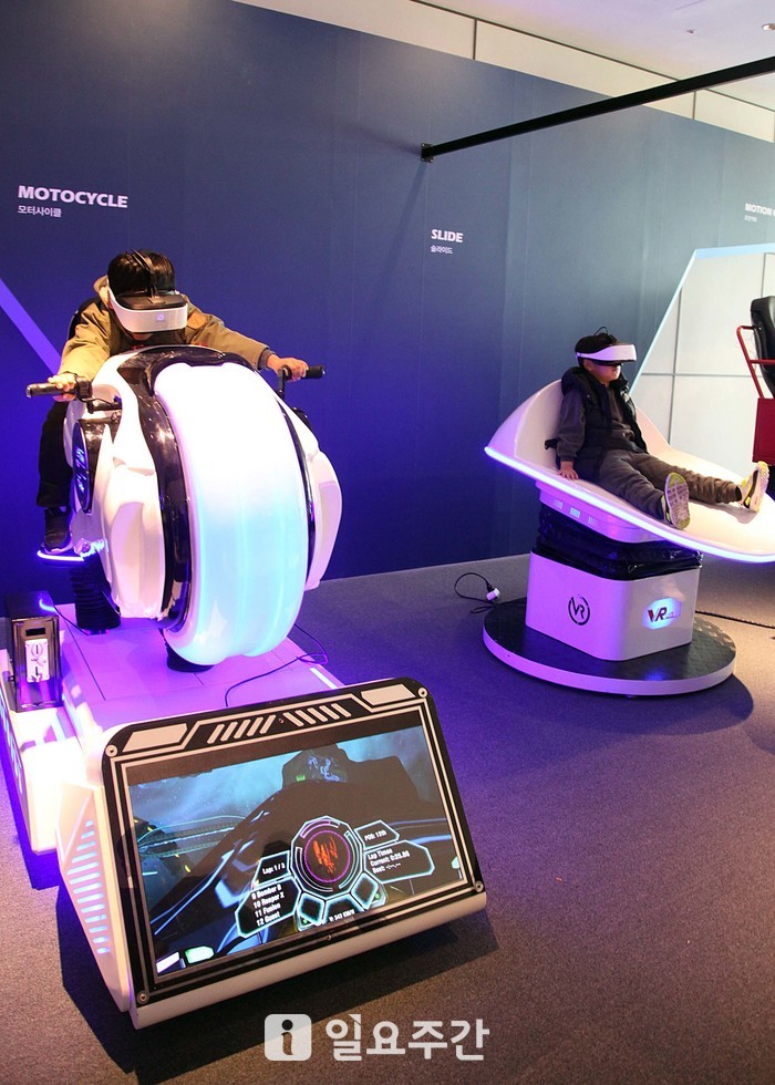| ▲VR체험존 'VR런'에서 VR리듬게임을 비롯해 우주 바이크 레이싱과 롤러코스터, 우주탐험 등 다양한 VR게임을 체험하고 있는 모습.(사진=신세계 센텀시티 제공) |