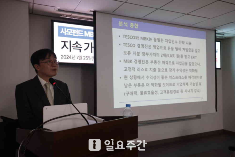 이날 발제에 나선 법무법인 여는 장석우 변호사는 MBK 인수 전후의 부가가치, 자본구조, 현금흐름 등을 비교한 홈플러스의 경영분석 결과를 발표해 눈길을 끌었다.