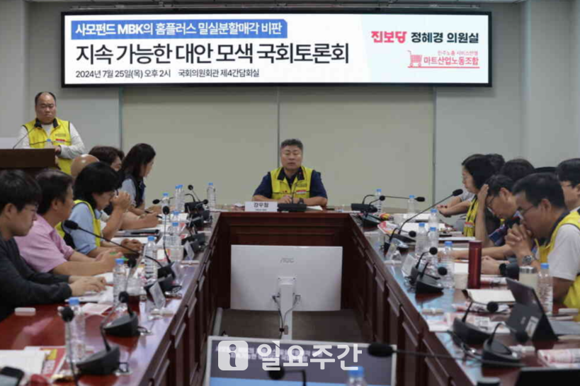 지난 25일 민주노총 서비스연맹 마트노조와 진보당 정혜경 의원이 공동 주최한 홈플러스 토론회에서 이 같은 상황을 빗댄 발언이 주목을 받았다. 이날 토론회에서는 홈플러스의 경영 상황과 사모펀드 MBK 파트너스(MBK Partners, 회장 김병주)의 인수 이후 변화에 대한 뜨거운 논의가 펼쳐졌다.