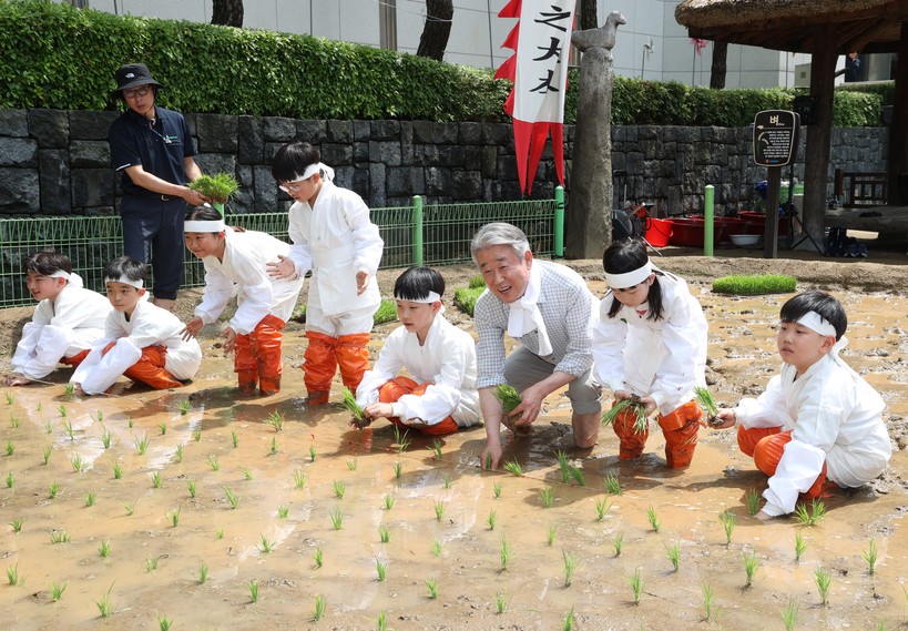 [일요주간 = 김완재 기자] 강호동 농협중앙회장이 서울 중구 농업박물관 야외농장에서 어린이들과 함께 전통 손모내기 체험에 나섰다. 모내기 후 떡과 식혜로 새참을 나누며 풍년과 가족의 안녕을 기원하는 자리도 마련됐다.