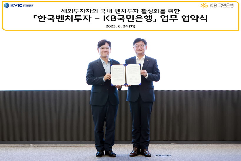 KB국민은행(은행장 이환주)은 지난 24일 한국벤처투자(대표 이대희)와 ‘해외투자자의 국내 벤처투자 활성화를 위한 업무협약(MOU)’을 체결했다고 25일 밝혔다.