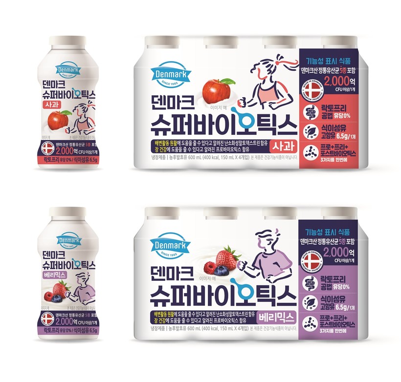▲ 동원F&B가 덴마크산 정통 유산균을 함유한 ‘덴마크 슈퍼바이오틱스’ 2종(사과, 베리믹스)을 출시했다.(사진=동원F&B 제공)