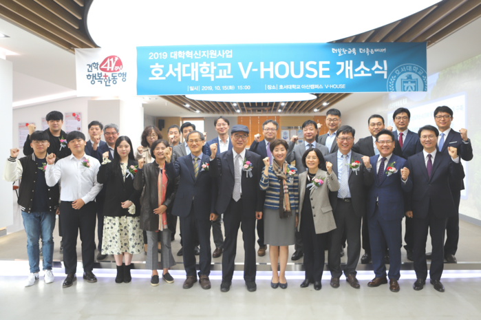 정상희 행정부총장은 “V-HOUSE는 학생들이 자유롭게 모임을 갖고 소통할 수 있는 학생 친화적인 교육공간으로 다양한 교육인프라를 통해 교육성과의 질적 향상과 학생 취·창업 역량을 개발할 수 있는 공간”이라며 “4차 산업혁명 시대를 맞이해 창의융합형 인재를 양성하기 위해 조성한 이 공간이 호서대학교 학생들에게 새로운 도전과 꿈의 공간이 되기를 소망한다”고 밝혔다.