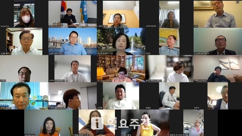 ▲UN피스코는 지난 27일 성공한 지도자를 초청해 명사 초대석을 개최했다. 전 세계 해외동포 300여명이 zoom을 통해 강연을 지켜봤다.(사진=정승덕 기자)
