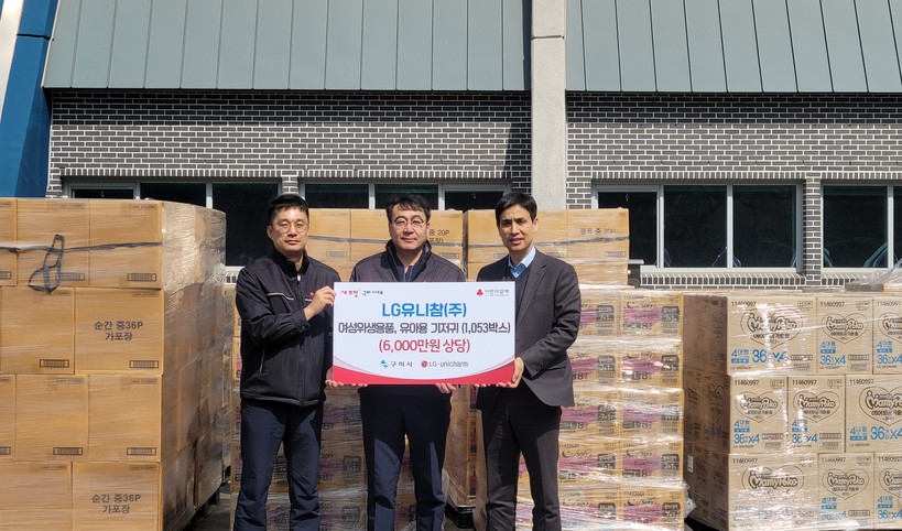 엘지유니참은 경북 구미시청과 함께 진행하는 ‘쉐어 패드(Share Pad)’ 캠페인으로 쏘피(SOFY) 생리대 25만 장과 마미포코 기저귀 3만 장을 지역사회에 기부했다고 8일 밝혔다.
