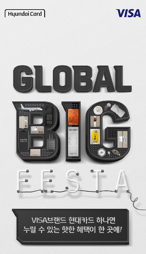 ‘글로벌 빅 페스타’는 현대카드와 글로벌 결제 네트워크 브랜드 VISA는 첫번째 대규모 프로모션으로 VISA 브랜드 현대카드를 이용해 해외 가맹점에서 결제하는 고객에게 다양한 이용 혜택을 제공한다.