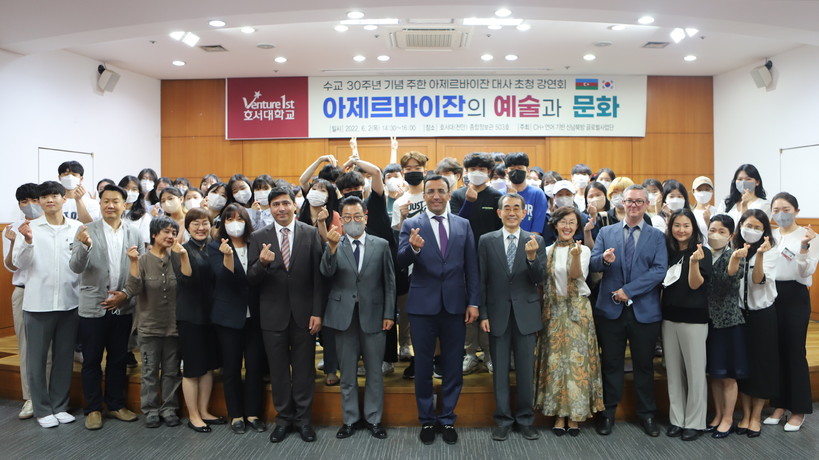 행사는 호서대 김대현 총장, 주한 아제르바이잔 부대사, 한국언어문화학과·영어영문학과 교수 및 학생 등 100여 명이 참여했고, 양국 문화에 대한 이해를 넓혀가기 위해 ‘아제르바이잔의 문화와 예술’을 주제로 람지 테이무로프 주한 아제르바이잔 대사의 특별 강연과 학생들 간 질의응답이 이어졌다.