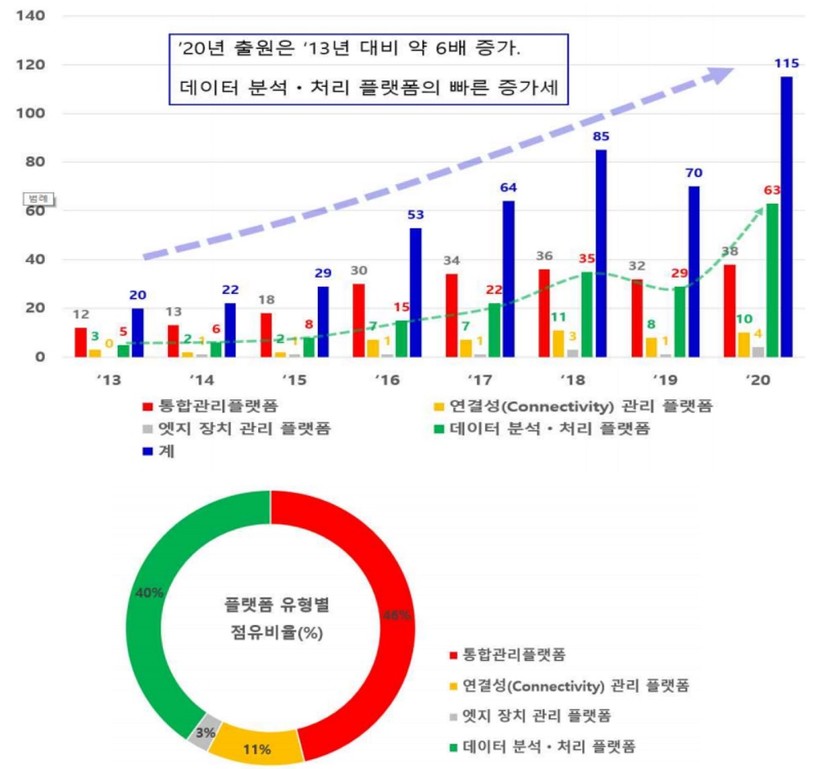 ▲ IoT 플랫폼 유형별 출원 동향 및 점유율. (사진=특허청)