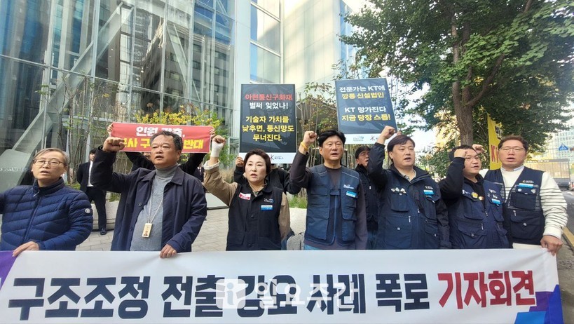 그러면서 "KT 김영섭 사장과 안창용 부사장 등은 직원들에게 부당한 전출을 강요한 것에 대해 즉각 사과하고 이러한 강요 행위를 즉시 중단하라"며 "KT는 실패한 구조조정을 즉각 철회하고 KT가 책임 있는 자세로 노동자의 권리를 보호하고 직원들이 마음 놓고 일터로 돌아갈 수 있도록 현장 안정과 경영 정상화를 추진하라"고 촉구했다.