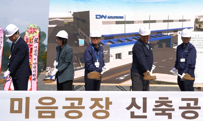 1일 DN솔루션즈에 따르면 지난 9월 30일 부산 강서구 생곡동 국제산업물류도시 내 신공장 부지에서 착공식을 개최했다. 배규호 DN솔루션즈 수석부사장 등 임직원과 부산시 관계자, 공사업체 관계자 등이 착공식에 참석해 공사 기간 중 무사고와 안전을 다짐했다.