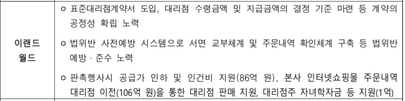 이랜드월드는 표준대리점계약서를 도입하고, 대리점이 받는 금액과 지급해야 할 금액에 대한 기준을 명확히 마련하는 등 계약의 공정성을 높이기 위한 노력을 기울였다.