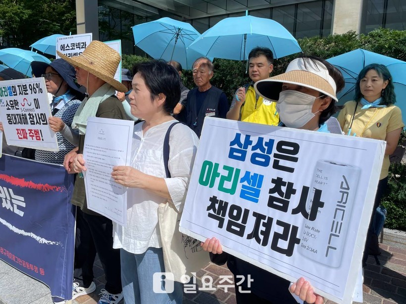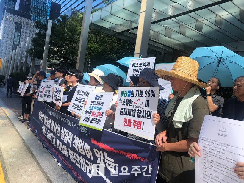 이어 “에스코넥은 아리셀의 지분 96%를 소유하고 아리셀의 영업, 홍보, 매출을 실질적으로 지배, 관리, 운영해 온 참사의 진짜 주범”이라며 “구속된 아리셀·에스코넥 대표 박순관은 삼성출신으로 에스코넥은 삼성전자에 삼성갤럭시 핸드폰 부품을 납품해 왔고 삼성SDI에 리륨 이차 배터리 부품(분리막)을 납품해 온 삼성의 일차 협력회사이다. 이런 현실에서 삼성이 에스코넥의 불법 반인권 경영을 몰라서는 안 된다”고 강조했다.