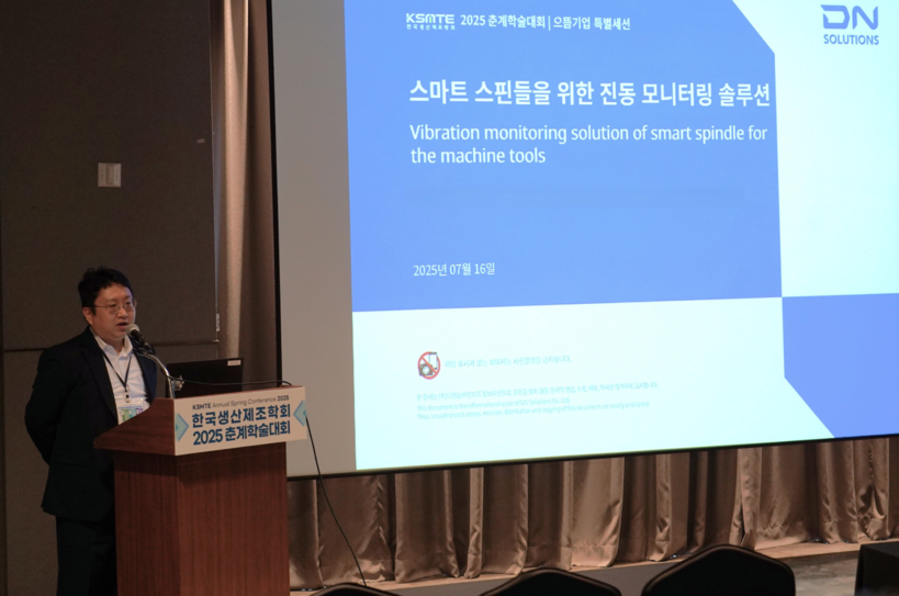 [일요주간 = 엄지영 기자] 공작기계(머신 툴 Machine Tool) 글로벌 3위, 국내 1위 기업인 ㈜DN솔루션즈(DN Solutions, 대표이사 김원종)가 한국생산제조학회 2025 춘계학술대회에서 경희대·부산대·연세대·한국기계연구원 등과 함께 ‘개방형 운영체제 기반 스마트 공작기계 및 지능화 솔루션’ 특별세션을 주도하며 최신 CNC 자동화·AI 기반 공작기계 기술과 연구 성과를 공유했다.