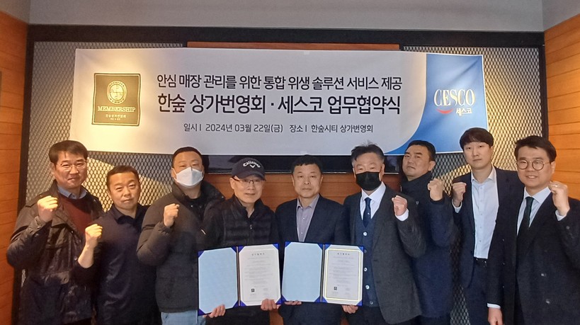 이번 협약은 한숲시티 상가번영회의 개별 사업장에서 세스코 서비스를 이용하는 조건에 관한 것이다. △해충방제 △바이러스케어 △환경가전 △식품안전 등으로 가입 매장 관리 및 위생 향상에 도움이 될 것으로 기대된다.