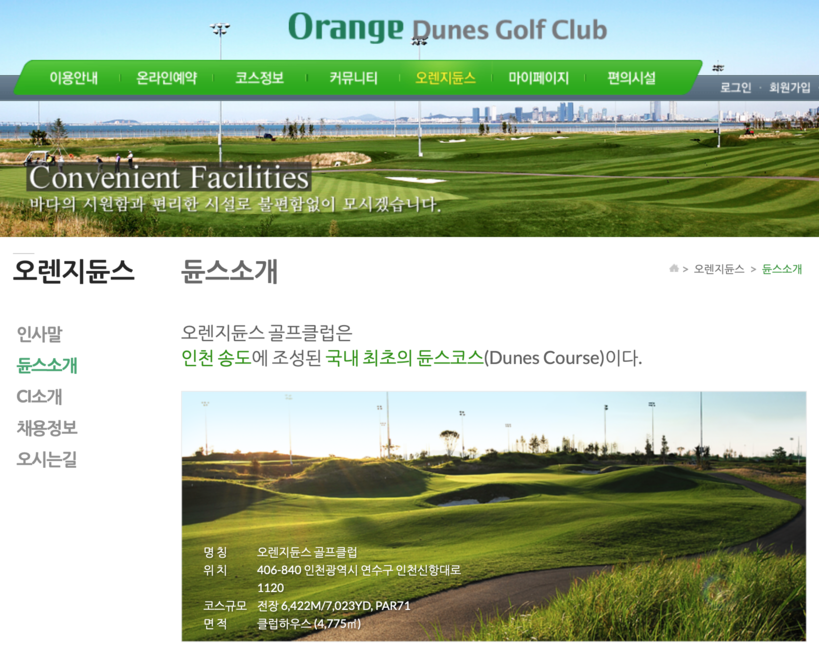 ▲ 오렌지듄스영종골프클럽 홈페이지 갈무리. |