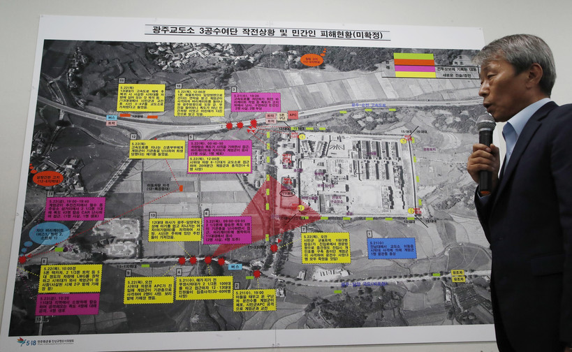 ▲ 지난해 5월 12일 5.18민주화운동진상규명조사위원회(위원장 송선태)가 서울 중구 진상조사위 사무실에서 기자간담회를 가졌다. 허연식 조사2과장이 당시 광주교도소 주변에서의 3공수여단 작전상황 및 민간인 피해현황에 대해 설명하고 있다.(사진=newsis) |