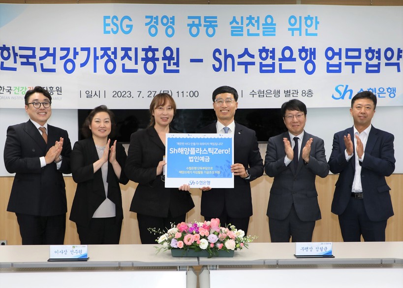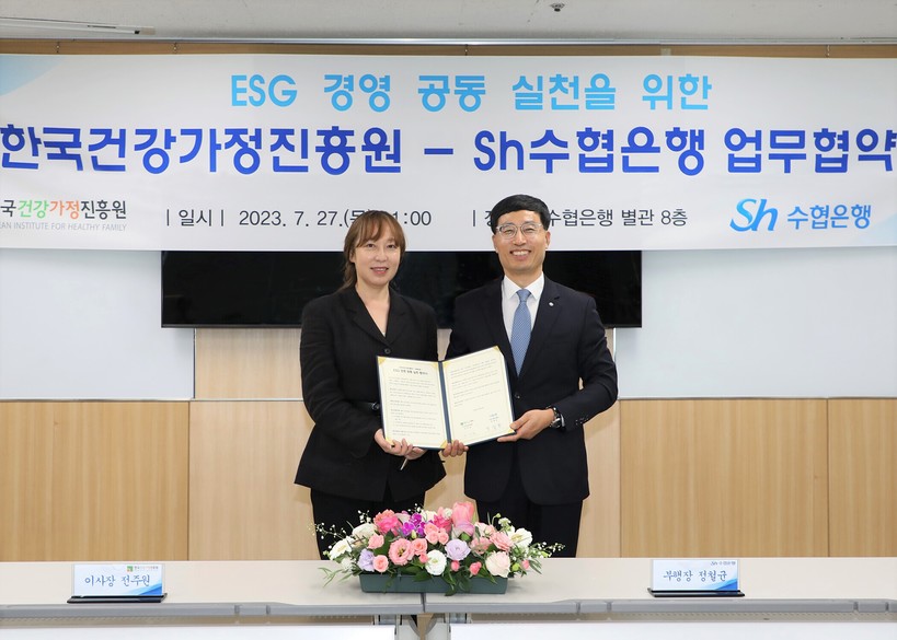[일요주간=김영란 기자] Sh수협은행(은행장 강신숙)은 지난 27일, 한국건강가정진흥원(이사장 직무대행 전주원, 이하 “한가원”)와 ‘사회적 책임 이행 실천을 위한 ESG경영 공동실천 업무협약’을 체결했다.