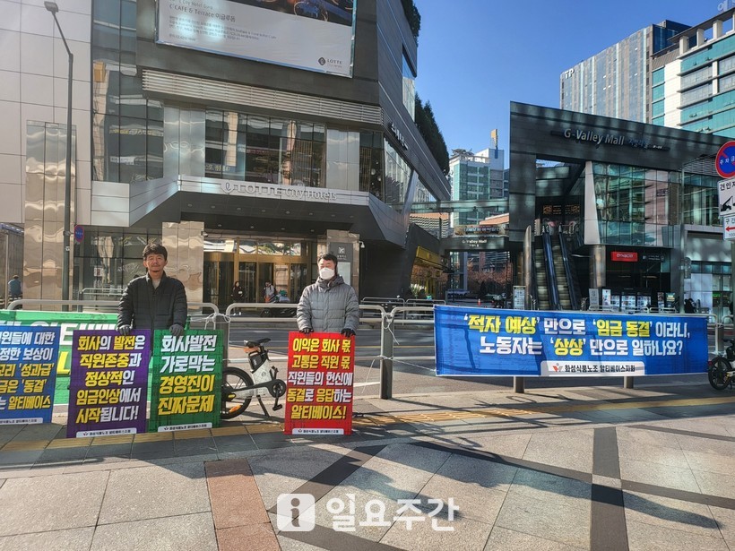 최근 전국화학섬유식품산업노동조합 소속 알티베이스지회(이하 알티베이스노조)는 설립 15년 만에 처음으로 쟁의행위를 결의하며 피켓팅 등 본격적인 단체행동에 나섰다. 현재 선전전을 진행하고 있다.
