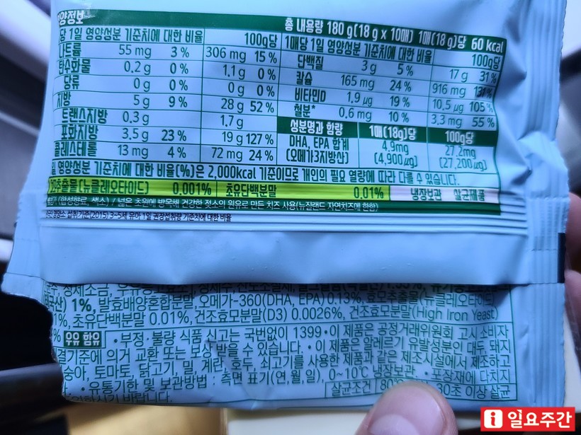 A씨는 5월 6일, 남양유업으로부터 자체적으로 실시한 치즈의 성분분석결과표를 받았다.