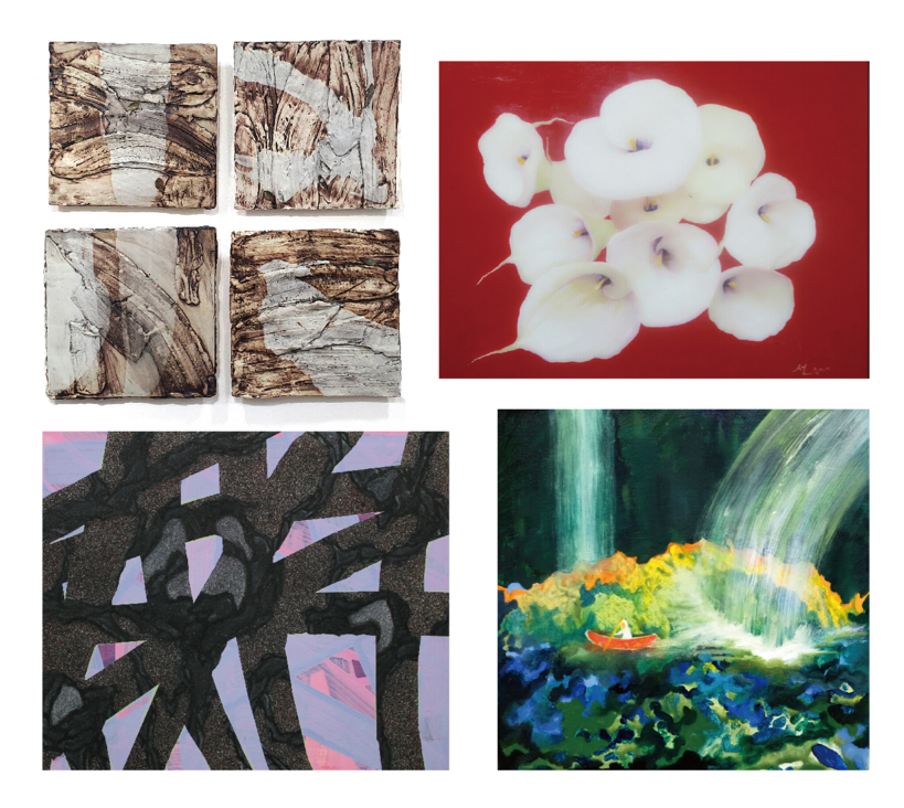 ▲ 왼쪽 위부터) 박인숙 자연을 품다. 설순미 피다. 우하남 Between Space, 오승경 Kayaking Through A Rainbow |