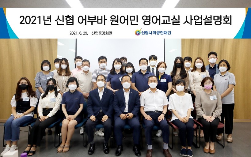 | ▲ 2021년 신협 어부바 원어민 영어교실 사업설명회 단체 사진. (사진=신협중앙회) |