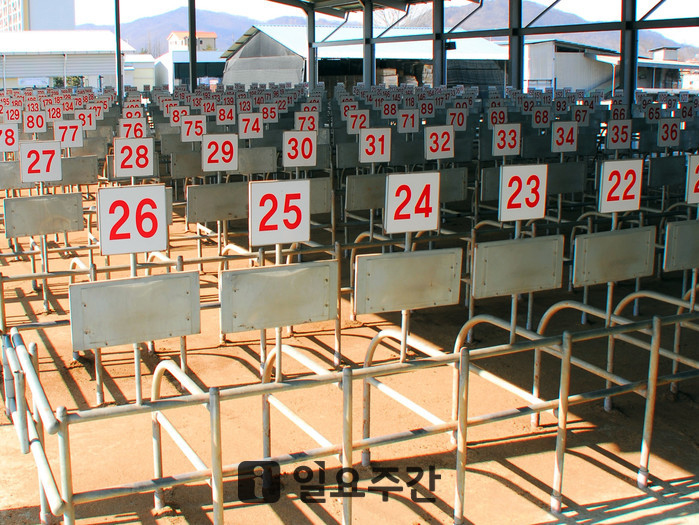 | ▲ 설을 앞두고 발생한 구제역 여파로 문을 닫은 충북 충주시 풍동 충주축협 소 경매장 모습에 적막감이 감돌고 있다. |