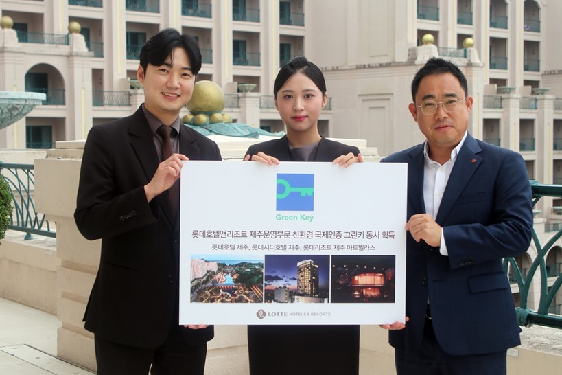 [일요주간 = 조무정 기자] 롯데호텔앤리조트는 제주에 위치한 3개 사업장(롯데호텔 제주, 롯데시티호텔 제주, 롯데리조트 제주 아트빌라스)이 친환경에 초점을 맞춘 경영활동을 전개한 결과 환경 분야 국제인증 프로그램인 ‘그린키(Green Key)’ 인증을 획득했다고 22일 밝혔다.