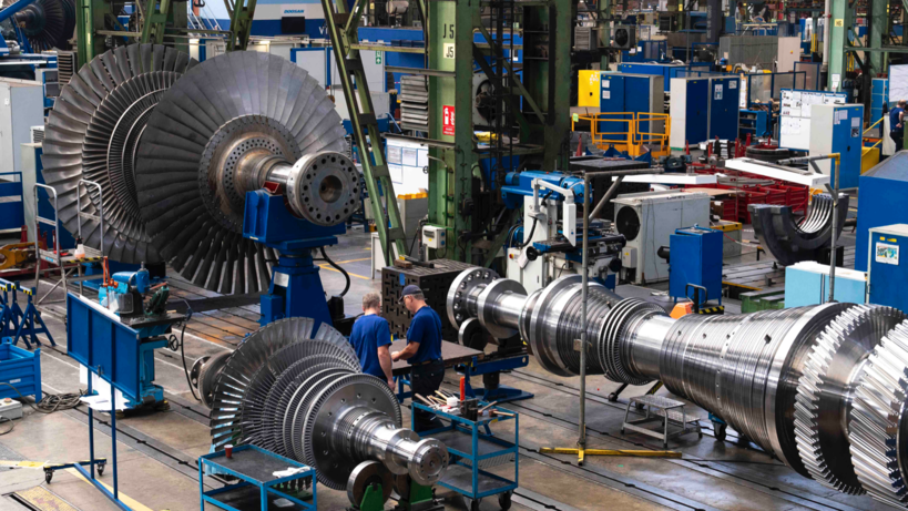 ▲ 체코 플젠에 위치한 두산에너빌리티의 체코 자회사 두산스코다파워 공장에서 직원이 증기터빈을 살펴보고 있다. (사진=두산그룹 제공)