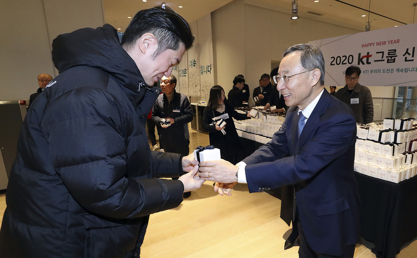 황 회장은 임직원들에게 "한국을 대표하는 혁신기업, 고객에게 사랑받는 국민기업, 미래가 기대되는 글로벌 1등 KT 그룹을 함께 만들자"고 독려했다.