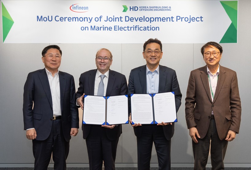 이번 MOU를 통해 인피니언은 HD한국조선해양이 선박 추진 드라이브 개발에 필요한 전력 반도체 기술을 지원한다. 또 필요 시 추진 드라이브에 최적화된 전력 반도체를 공동 개발하고 선박 분야 전동화 관련 기술 교류를 진행할 계획이다.