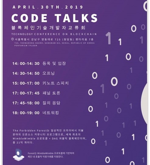 | ▲The Forbidden Forest이 주최하는 Code Talks 블록체인 기술개발자교류포럼 포스터./제공=The Forbidden Forest |