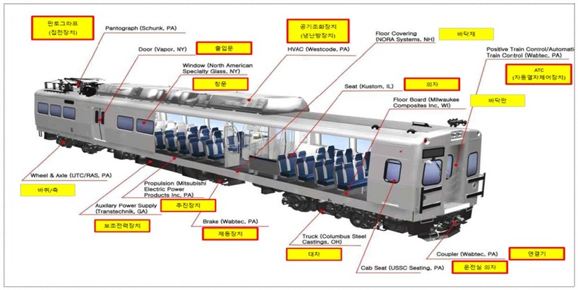 | ▲ 사건 관련 철도차량 부품 (빨간색 표기). (사진=공정거래위원회) |