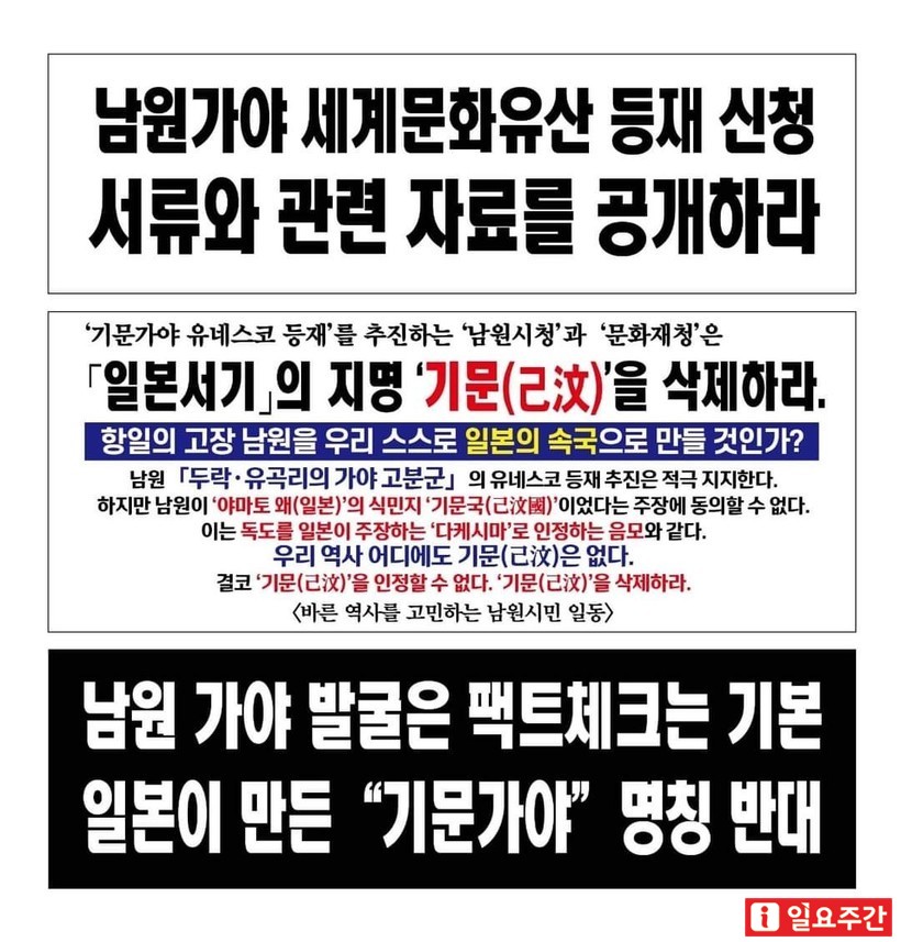또한 "기문"."다라" 시작으로 "일본서기" 나온 모든 명칭은 즉각 삭제하라."기문"."다라"를 시작으로 등재 강행시 남원시민들은 세계문화유산 철회투쟁을 선언 한다고 강력하게 요구했다.