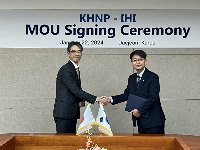 ▲ 한수원이 22일 일본 종합중공업기업 IHI와 공동협력 MOU를 체결 했다. (사진=한수원) |