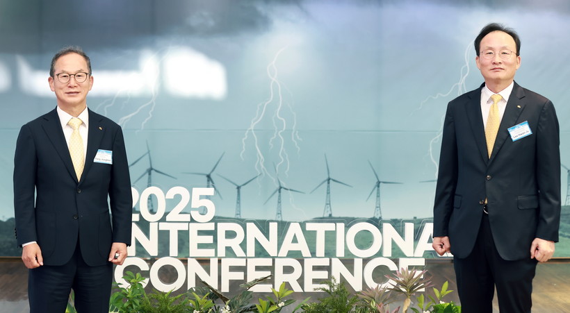 ▲ 지난 11일 서울 서대문구 소재 이화여자대학교 ECC 이삼봉홀에서 열린 ‘2025 국제 컨퍼런스’에서 양종희 KB금융회장(왼쪽)과 이환주 KB국민은행장(오른쪽)이 기념촬영을 하고 있다.(사진=KB금융그룹) |
