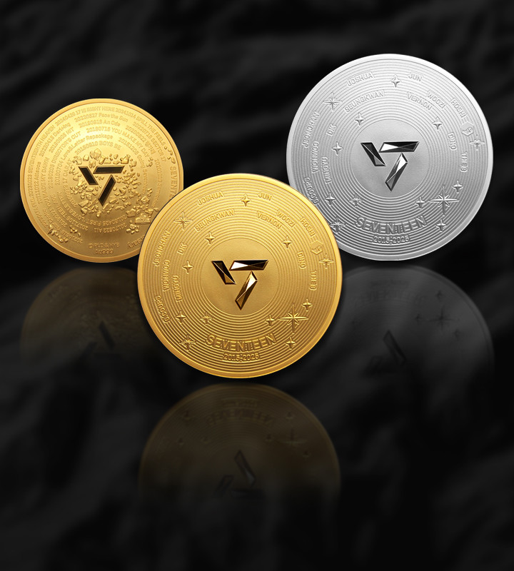 세븐틴 데뷔 10주년 공식 기념메달은 세븐틴의 로고와 음반(레코드판), 광산을 모티브로 디자인되어, 세븐틴의 정체성과 지난 10년간 글로벌 K-POP 그룹으로 성장해온 여정을 담았다.