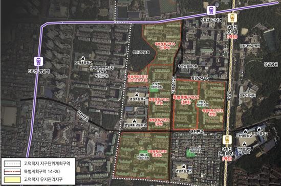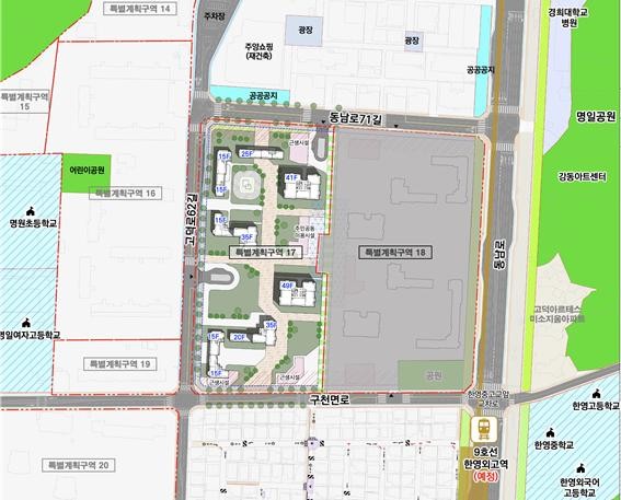 고덕 택지 지구단위계획상 현대아파트와 한양아파트는 특별계획구역 17, 18로 분리돼 있으나, 그간 기반시설의 일체적 정비 필요성 및 사업성 측면에서 통합개발의 필요성이 제기돼왔다.
