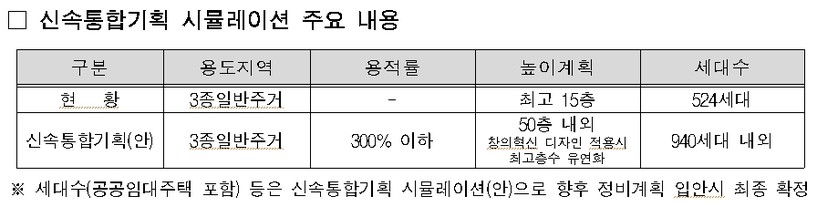 ▲ 신속통합기획 시뮬레이션 주요 내용(표=서울시) |